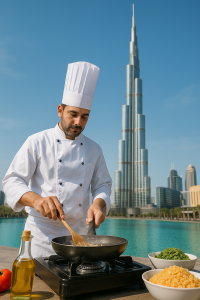 As daylight fades, your driver takes you to Dubai Marina, the modern waterfront that glows like a jewel at sunset. You stroll along the promenade, where global flavors mingle—Indian curries, Lebanese grills, and Turkish kebabs fill the air with irresistible aromas.